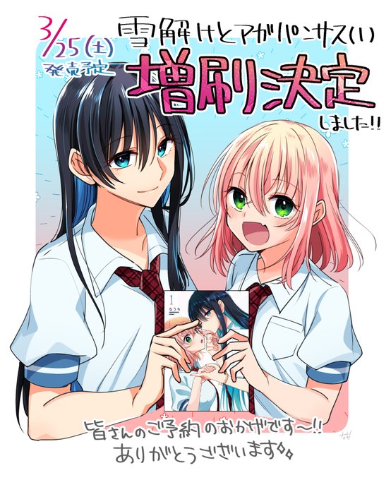\❄️お知らせ🌸/ 学園百合漫画『#雪解けとアガパンサス』の単行本✨第3⃣巻✨が5月27日(月)に発売されます! (紙・電子とも) 夏休みイベント・気持ちの変化・新キャラ登場など盛り沢山な巻となっております。ぜひよろしくお願いいたします~! ⬇️ご予約(amazon) amzn.asia/d/7cO4oBf