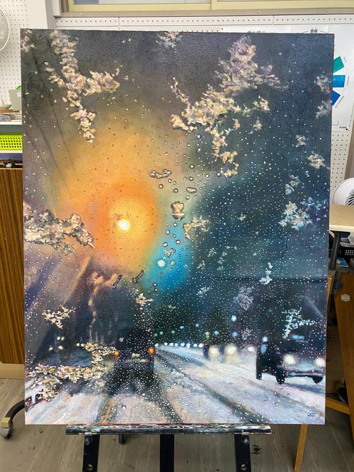 『 帰路につく RGY 』 透明水彩、ヴィフアール紙 #絵描きさんと繫がりたい #イラスト好きな人と繋がりたい #みんなで楽しむTwitter展覧会 #アトリエの系譜 #水彩画 #雪道 #雪景色 #イラスト #ライト