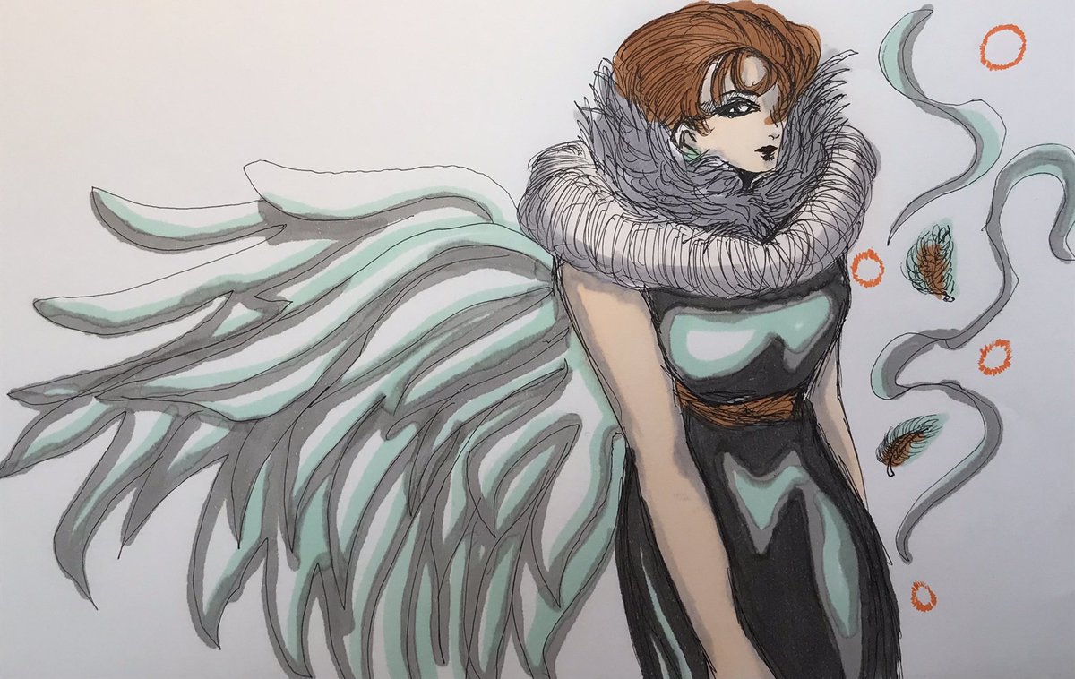 魔女(てんし) 絵を描きました♪✨ 色塗りもしました✨(できる限り少ない色で塗りました、この女性のとある雰囲気がだせていればと思います☺️) #オリジナル #オリジナルイラスト #ペン画 #絵描きさんと繋がりたい #絵 #雰囲気 (最近、ノセラレテなかったので久しぶりにノセマシタ♪😆)