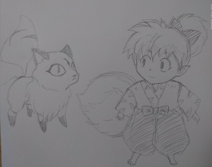 母が犬夜叉の七宝ちゃん(しっぽうちゃん)と雲母(きらら)好きなので描いてみた(笑) #絵師さんと繋がりたい #落描き #落書き #犬夜叉 #犬夜叉絵描きさんと繋がりたい #七宝 #雲母 #イラスト #絵描きさんと繋がたい #絵