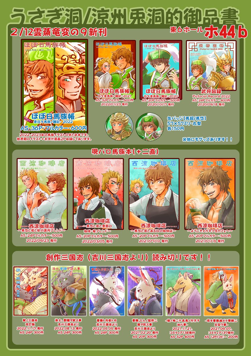 [雲蒸竜変の盟9] 東6ホール[ホ44b]うさぎ洞/涼州兎洞 お品書きです!本日いよいよ開催です。新刊既刊にペーパーを準備しました。皆さんよろしくお願いします! スケブ/エアスケブ/ネップリもあるよぉ!詳細はリプライに繋げていきますね。 BOOTH usagidoh.booth.pm #お品書き #雲蒸竜変の盟