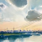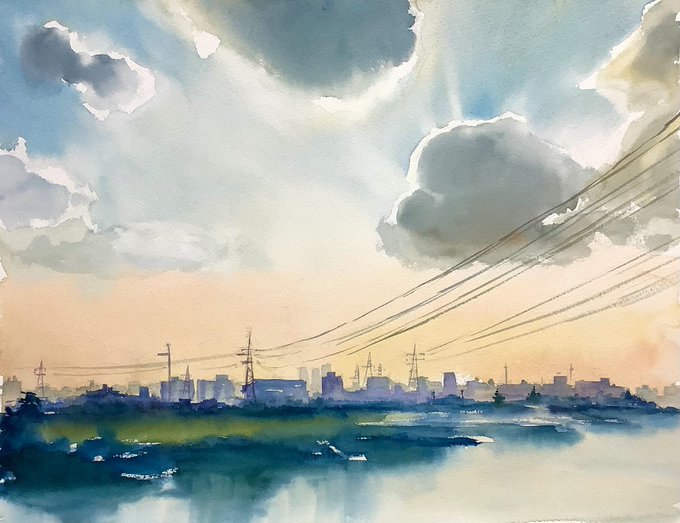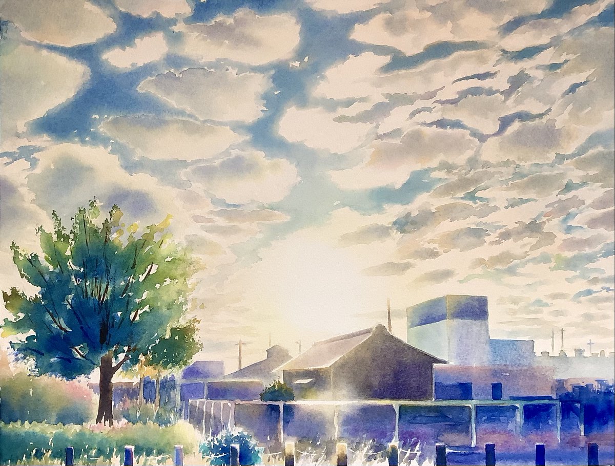 羊雲の行方 2021年の作品。 F6号ウォーターフォードホワイト。 #透明水彩 #水彩画 #風景画 #Watercolor #watercolorpainting #雲 #Watercolour