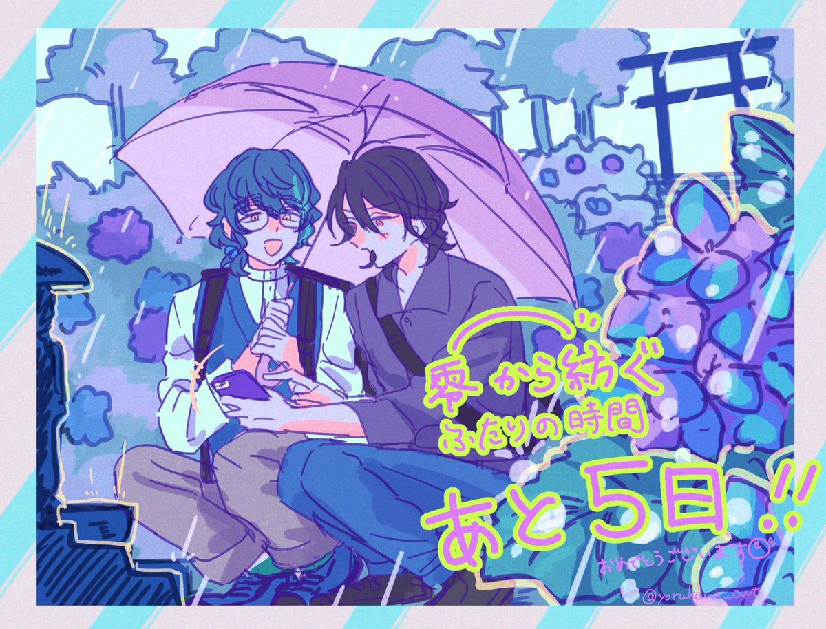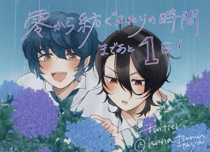 【零つむwebオンリーカウントダウン企画】 零つむwebオンリー開催まで、ついにあと1日! 本日はnanaさん(@nana_tsumutaya )の担当です。紫陽花とふたりのハーモニーが素敵なイラストです♪ #零紡ぐ時間 #零つむwebオンリーカウントダウンイラスト