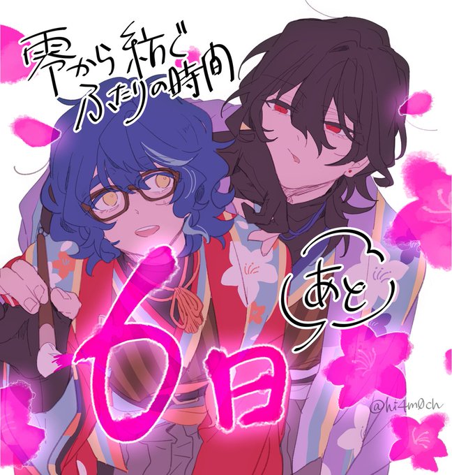 【零つむwebオンリーカウントダウン企画】 零つむwebオンリー開催まで、あと6日! 本日は蜜柑さん(@hi4m0ch)の担当です。ツツジ衣装のふたりにご注目♪ #零紡ぐ時間 #零つむwebオンリーカウントダウンイラスト