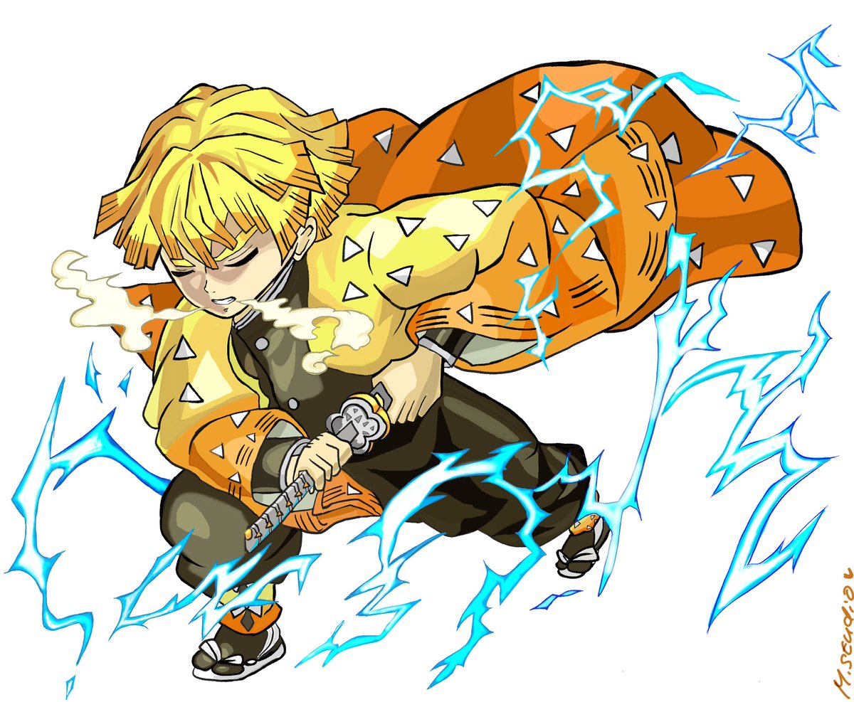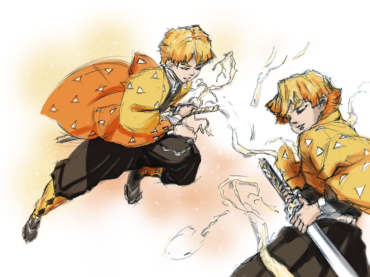 ファンアートです 鉛筆のラフ画に デジタルで着彩した 過去絵です #sketch #drawing #pencil #illustration #Digitalpainting #photoshop #デジタルペインティング #イラスト #デッサン #鉛筆画 #絵が好きな人と繋がりたい #ファンアート #鬼滅の刃 #我妻善逸 #雷の呼吸 #霹靂一閃