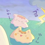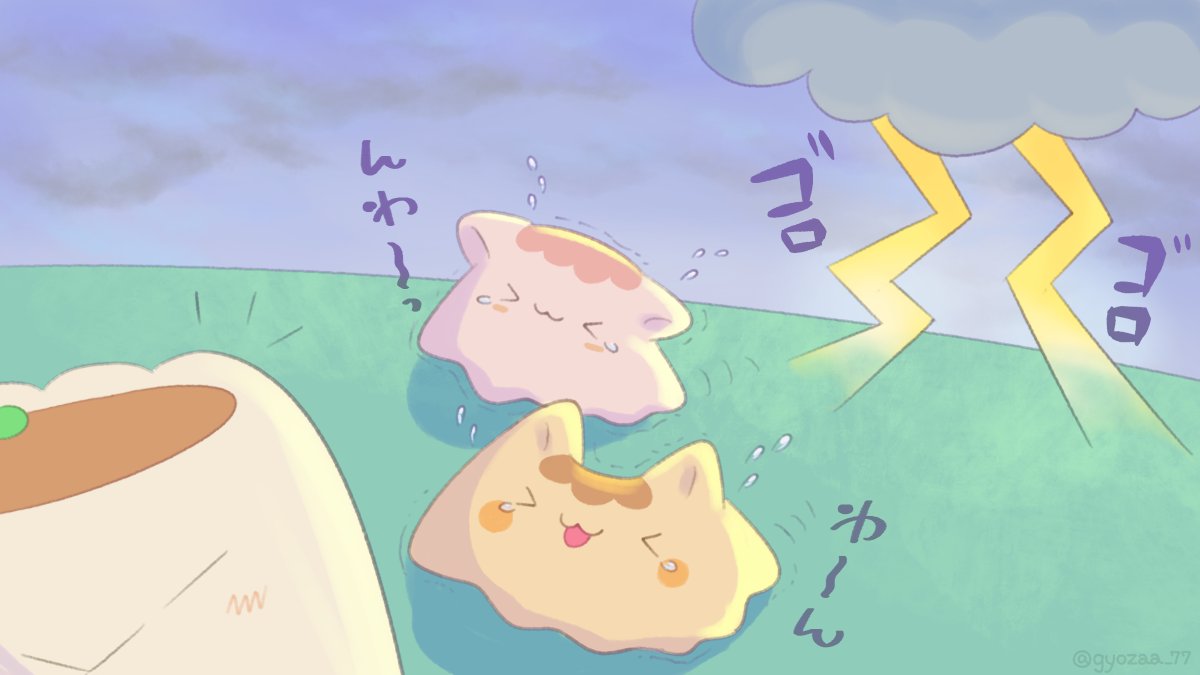 わ~っ!! ゴロゴロかみなりだ! しゅまーいたすけて~~!!!!🥟💦 #ゆるいイラスト #イラスト #illustration #illustrations #ギョザー #雷記念日 #雷の日