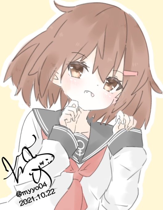 「よろしくね!」 (30:30開始、+15m) #艦これ版深夜の真剣お絵描き60分一本勝負 #艦これ版真剣お絵描き60分一本勝負_20221022 #雷 とっくに日付またいでるけど #雷進水日 #雷生誕祭 #雷生誕祭2022