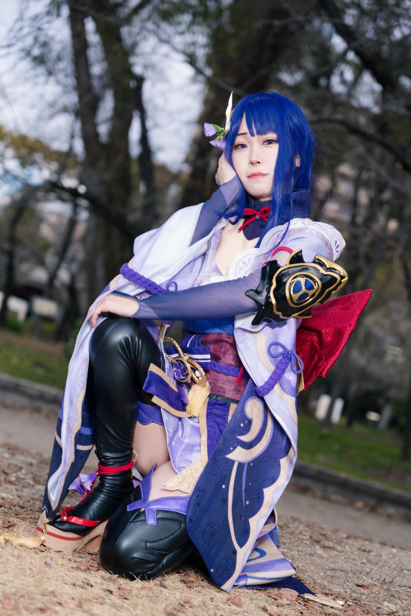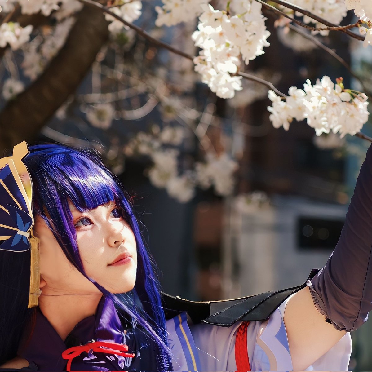 ⚠︎コスプレ 原神/雷電将軍 『浮世の風景は幾千年も変わらないというのに、人の世とはこうも白露と泡のように...儚い。』 📷・編集:@aoao_xxx_c #SBCくじゅう花公園 #雷電将軍コスプレ