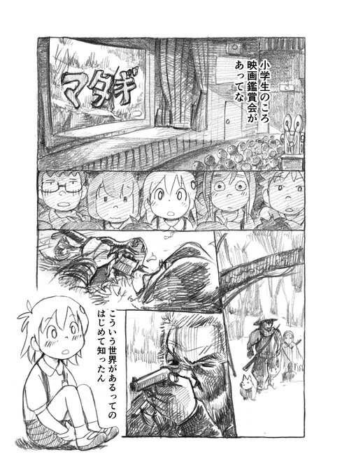 狩猟のきっかけ #雷鳥ちゃん狩猟日誌 熊撃ちマタギの爺さんと孫のお話し。 ダメ犬だったチビが見事な猟犬に成長する文部省推奨だかの映画。 学校で見せられてコレや!って思ったん 爺さんカッコいいん。 囲炉裏で鉛溶かして弾作って、呑んでる酒は密造酒(ドブロク) 作画・満月亭さかな@toto_sakana