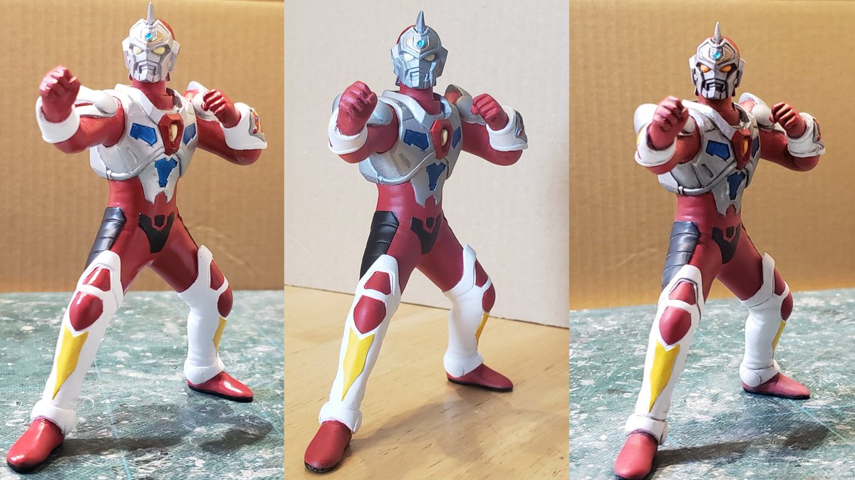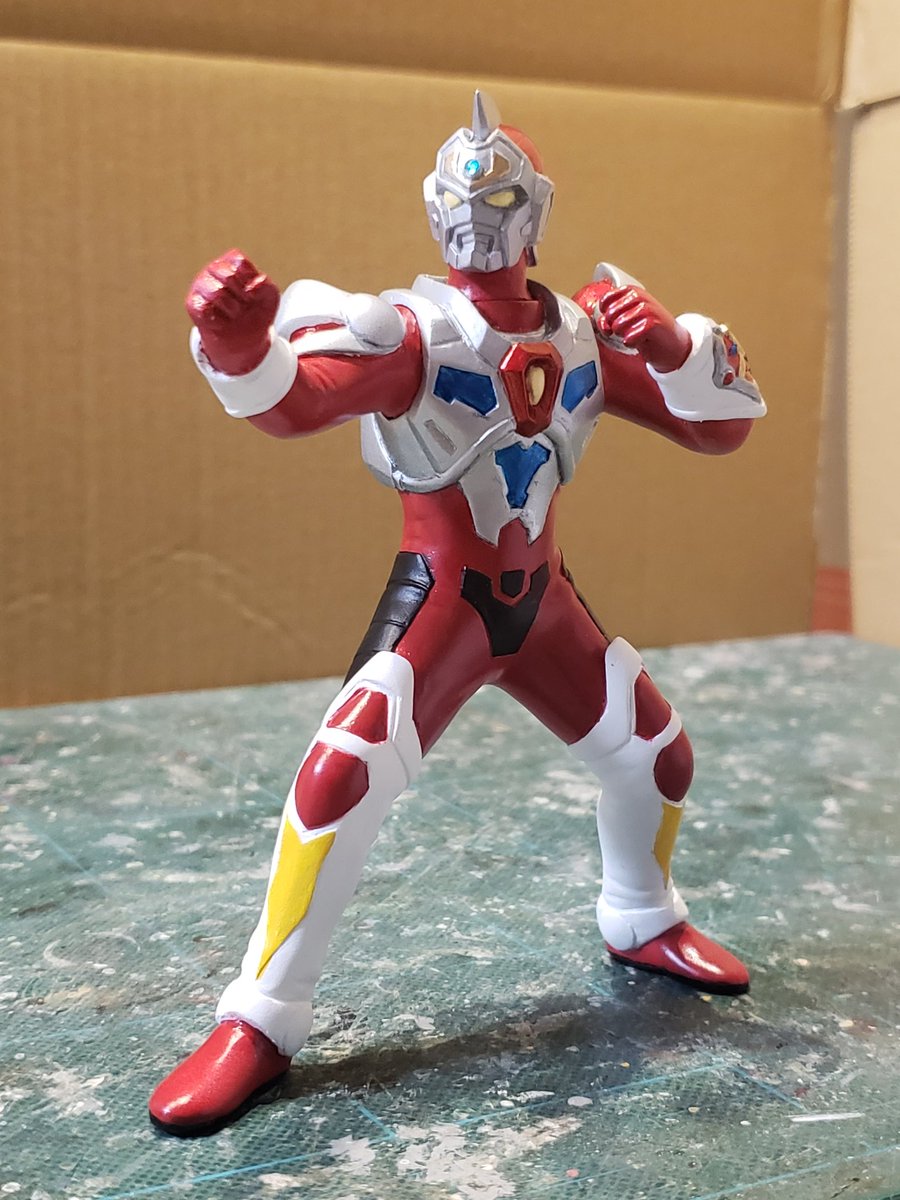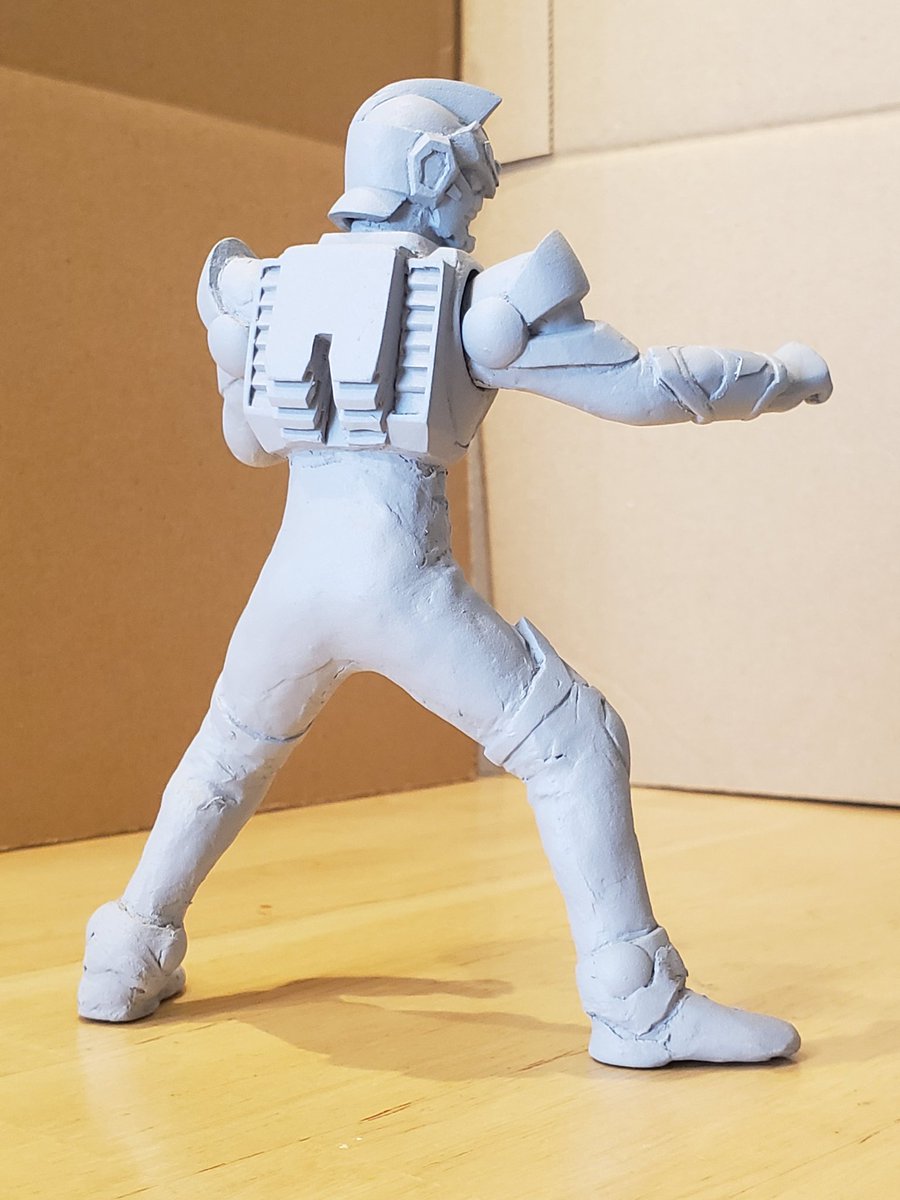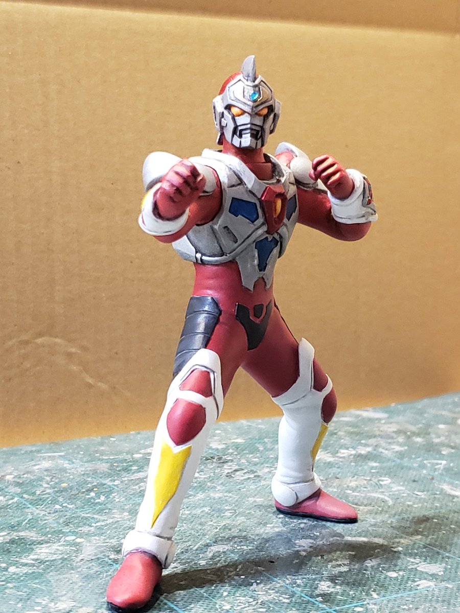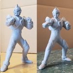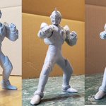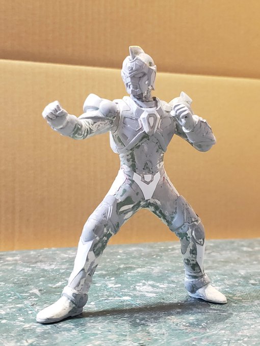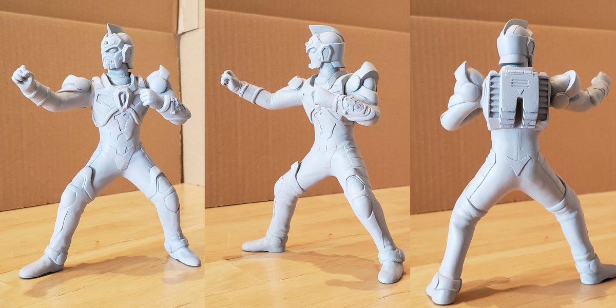 並行でチビチビやってて、やっと形が出来て来たのでコソッと😅怪獣たちに合わせたルミナスサイズのグリッドマンをスクラッチしてます。ヒーローは初めてなんで四苦八苦😅マスクやプロテクターはエポパテで削り出し。まだポーズ不自然なんで切って直さないとです。。#電光超人グリッドマン