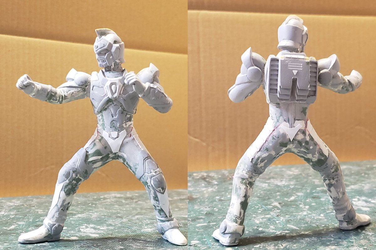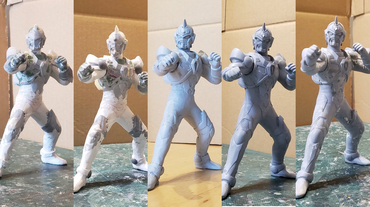 フルスクラッチ電光超人グリッドマンその13!細かい部分をチビチビ整えて、表面処理もようやく終わりそうです。最初のほうからの流れをみると結構頑張ったなぁ😅塗装はさすがにドライブラシだけって訳には行かないので、缶スプレーも使いつつやっていこうかと思います。#電光超人グリッドマン twitter.com/i/web/status/1…
