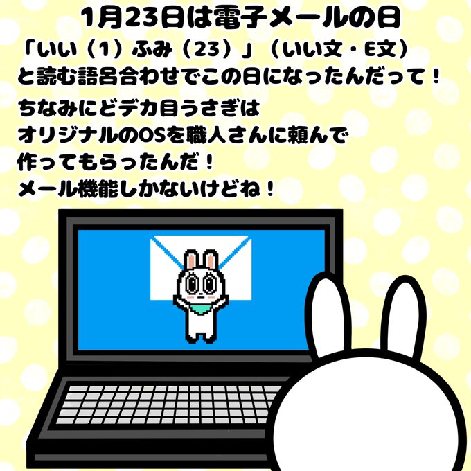 おはようございます☺ どデカ目うさぎのパソコンに通知が届いているよ📨確認してるみたいだね✨ #うさぎ #イラスト #どデカ目うさぎ #今日は何の日 #イラスト好きさんと繋がりたい #illustration #電子メールの日