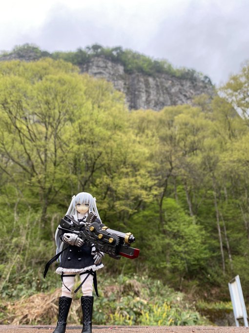 来ました三条市、切り立った崖の存在感が凄いですね! 見晴らしも良さそう! って、どうしてそんなに武装されてるんですか? あっ…… 樟美「行きますか?」 遠慮しておきます #アサルトリリィドール部 #電撃新潟奪還戦