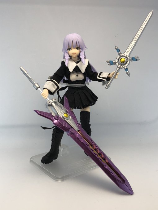 今回ラスバレに辰姫2ndが実装記念 我が家の亜羅椰、辰姫、弥宙にそれぞれ マルミアドワーズ、キャリバーン、コルブランド を持たせた写真を撮ってみました!! #アサルトリリィドール部 #電撃新潟奪還戦