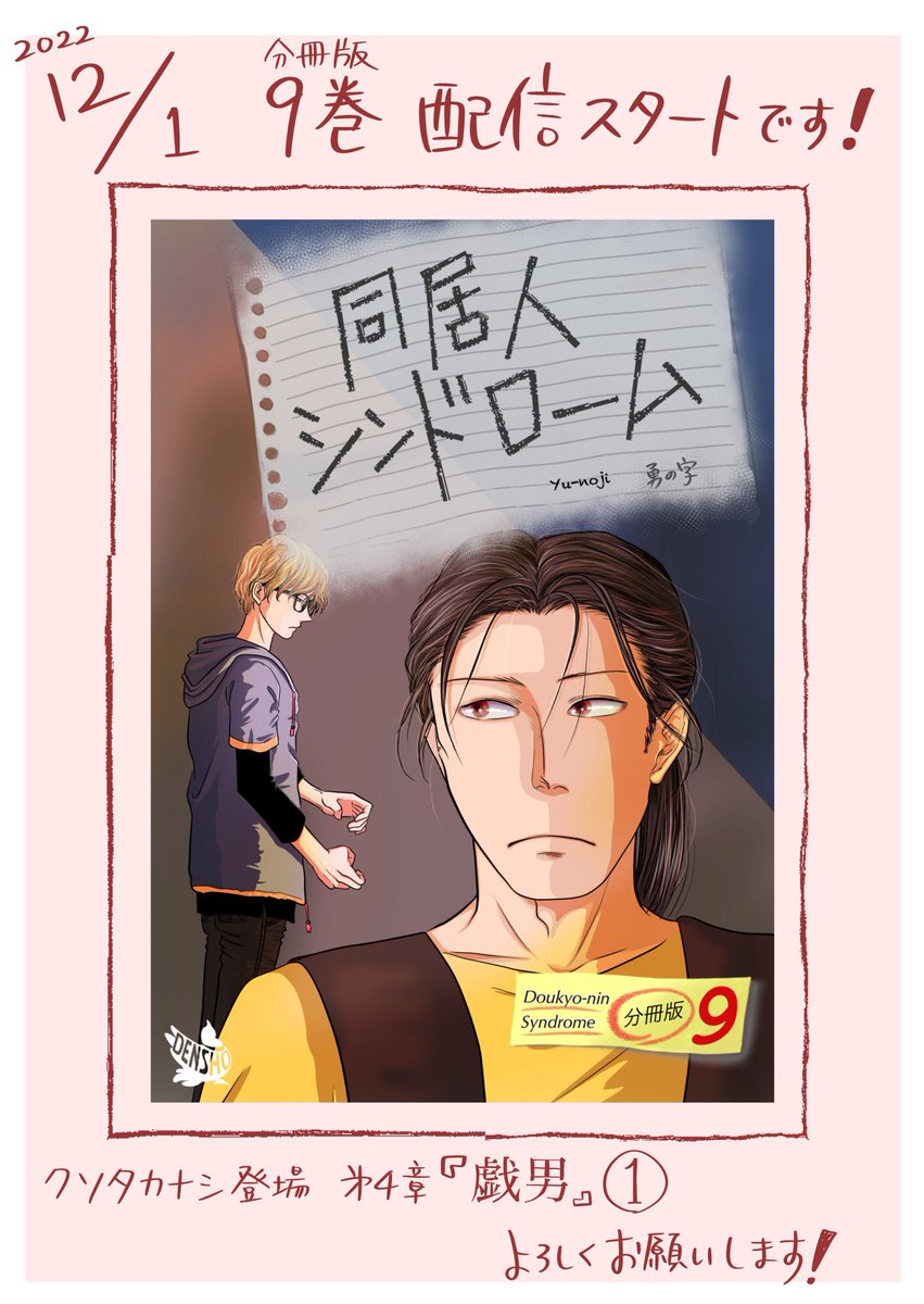 ⚠️お知らせ⚠️ 12月1日 新刊 「同居人シンドローム」分冊版9巻🍌配信スタートしました! キーマン・クソタカナシ登場の第四章「戯男」天馬の章① 皆さまどうぞ宜しくお願いします!(拡散希望🙏) #同居人シンドローム #創作BL #電書バト