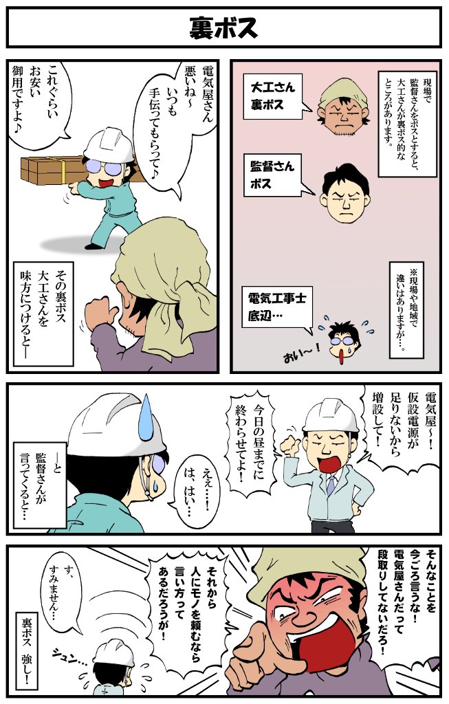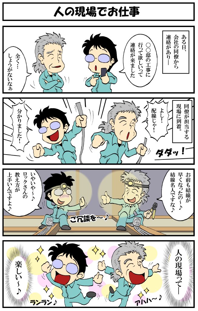 アラフォー男の電気工事士マンガ【第135話】 マンガ【転電虫】更新しました。 人の現場の仕事って…。 #転電虫 #全ツイ建 #電気工事士 #漫画が読めるハッシュタグ #マンガ #4コマ漫画 #絵描きさんとつながりたい tendenmushi.com/manga/electric…