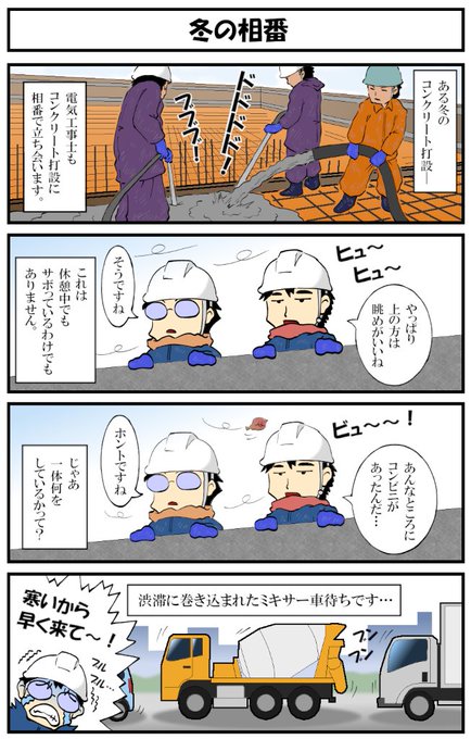 アラフォー男の電気工事士マンガ【第137話】 マンガ【転電虫】更新しました。 冬の相番での出来事…。 過去作から、初めての相番でやらかした勘違いもどうぞ。 #転電虫 #全ツイ建 #電気工事士 #マンガ #漫画が読めるハッシュタグ #4コマ漫画 tendenmushi.com/manga/electric…
