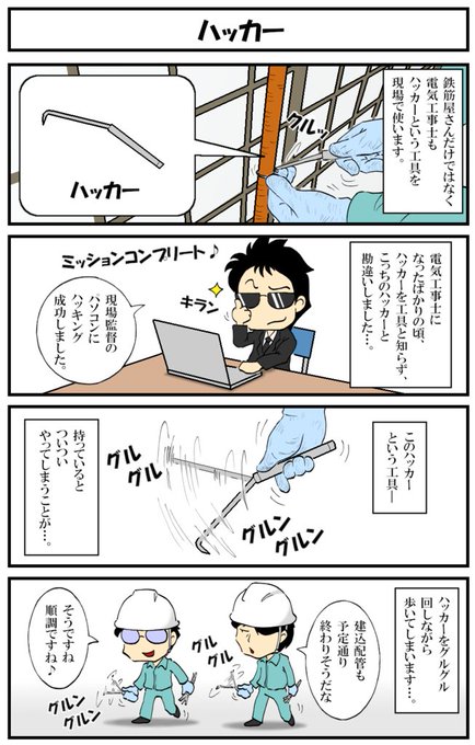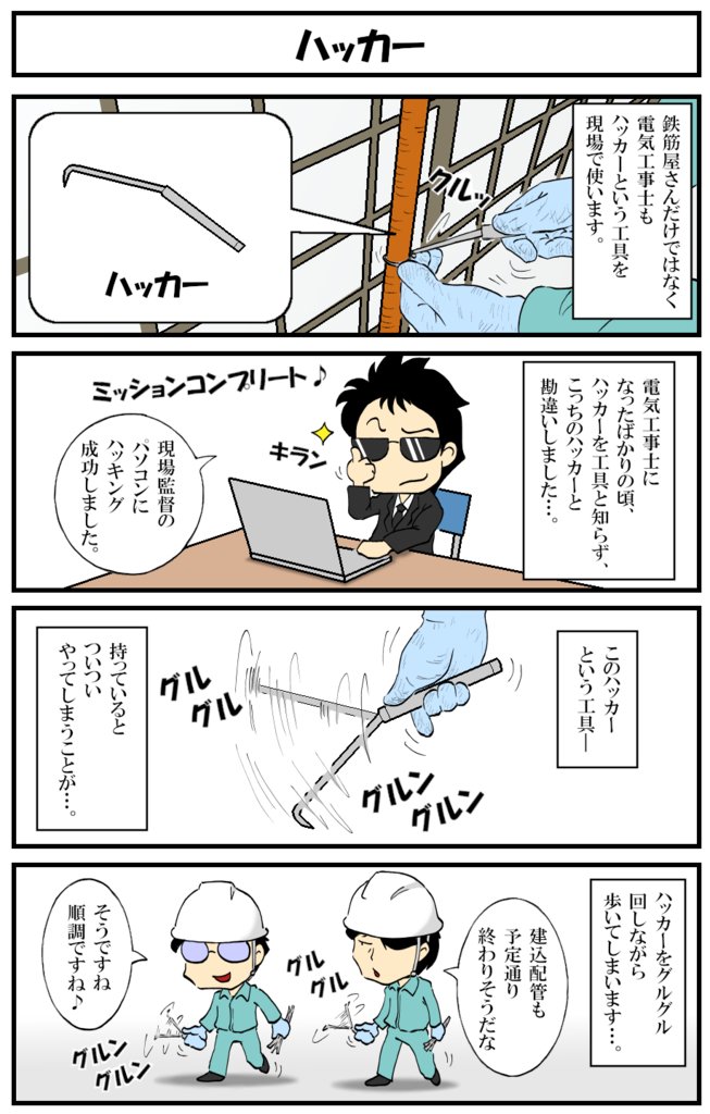 アラフォー男の電気工事士マンガ【第139話】 マンガ【転電虫】更新しました。 ハッカーを持つと、ついつい…。 #転電虫 #全ツイ建 #電気工事士 #マンガ #漫画が読めるハッシュタグ #4コマ漫画 #絵描きさんと繫がりたい tendenmushi.com/manga/electric…