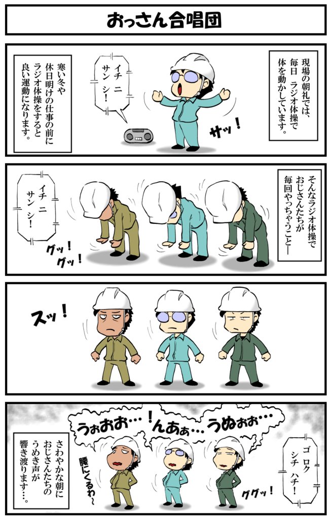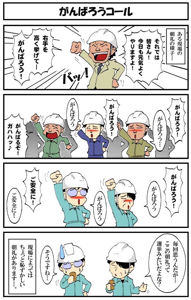 アラフォー男の電気工事士マンガ【第144話】 マンガ【転電虫】更新しました。 朝礼で響き渡るおっさんの声。 #転電虫 #全ツイ建 #電気工事士 #漫画 #マンガが読めるハッシュタグ #4コマ漫画 #絵描きさんと繋がりたい tendenmushi.com/manga/electric…