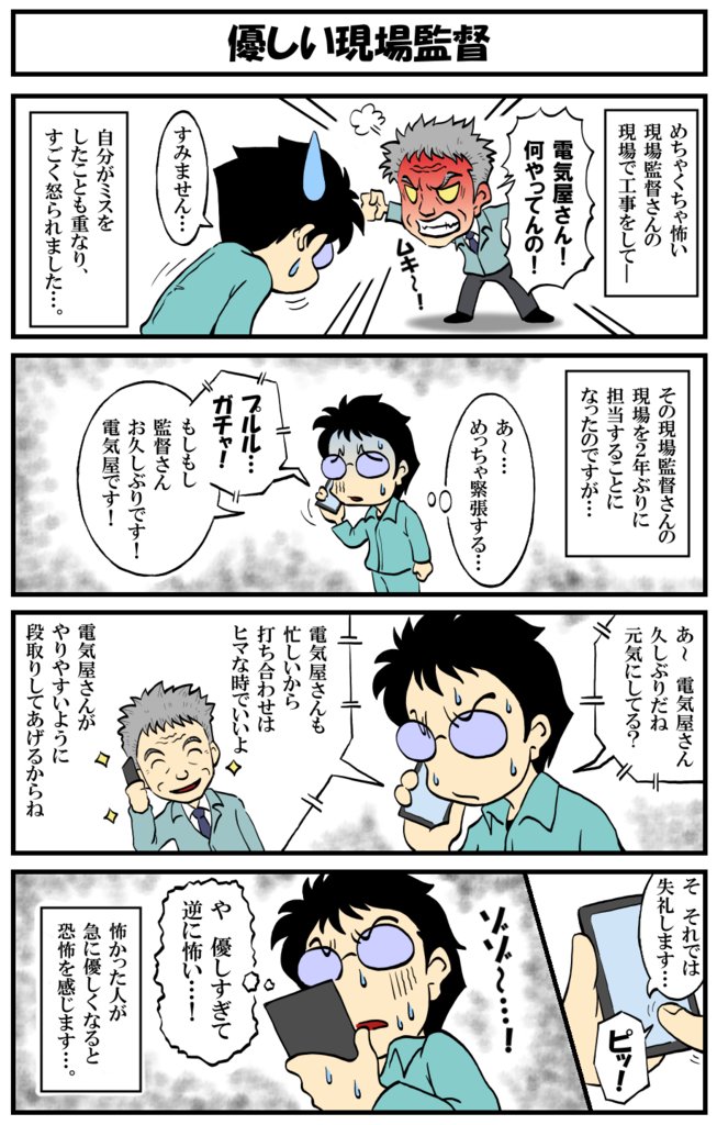 アラフォー男の電気工事士マンガ【第145話】 マンガ【転電虫】更新しました。 逆に怖くなるパターン…。 過去作もどうぞ♪ #転電虫 #全ツイ建 #電気工事士 #漫画 #漫画が読めるハッシュタグ #4コマ漫画 #絵描きさんと繋がりたい tendenmushi.com/manga/electric…