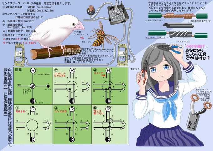 送電線 なかなか伝わらないお話3 【デジタル】 \のの字曲げのポーズ!/ 監督者を目指す方は、是非とっておいたほうがいい(と思う)国家資格っ 「電気工事士」 さぁ復唱しましょ♪ コンセントはそのまま ランプは白 スイッチは黒 あとは残りをつなぐだけ! #送電線 #電気工事士 twitter.com/mixed_by_kao/s…