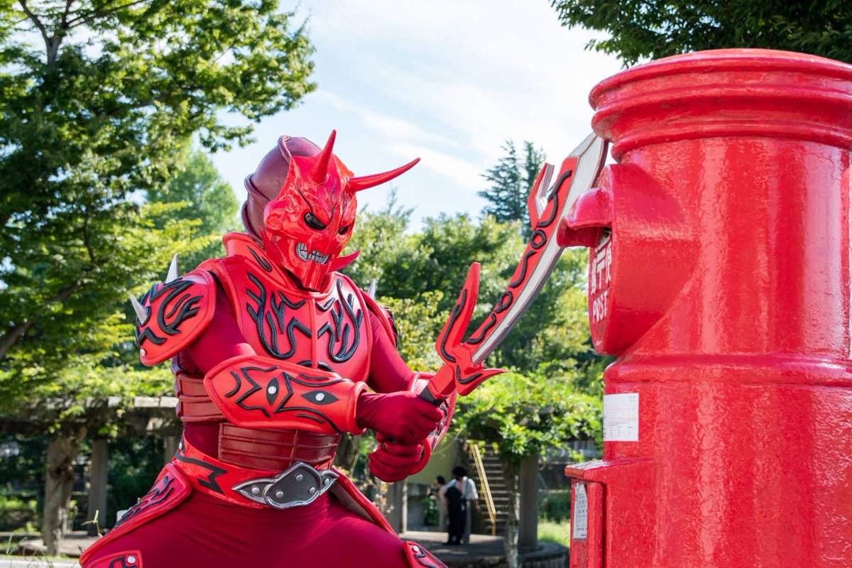 前に職場で見た、おじさんとおばさんが赤ちゃん言葉で話してたの最高にキモかった 電王が好きな甥っ子に自作の仮面で会いに行くも全然違くて泣かれるサメ #イラスト好きと繋がりたい #絵描きさんと繋がりたい #オリキャラ #サメ #電王 #モモタロス
