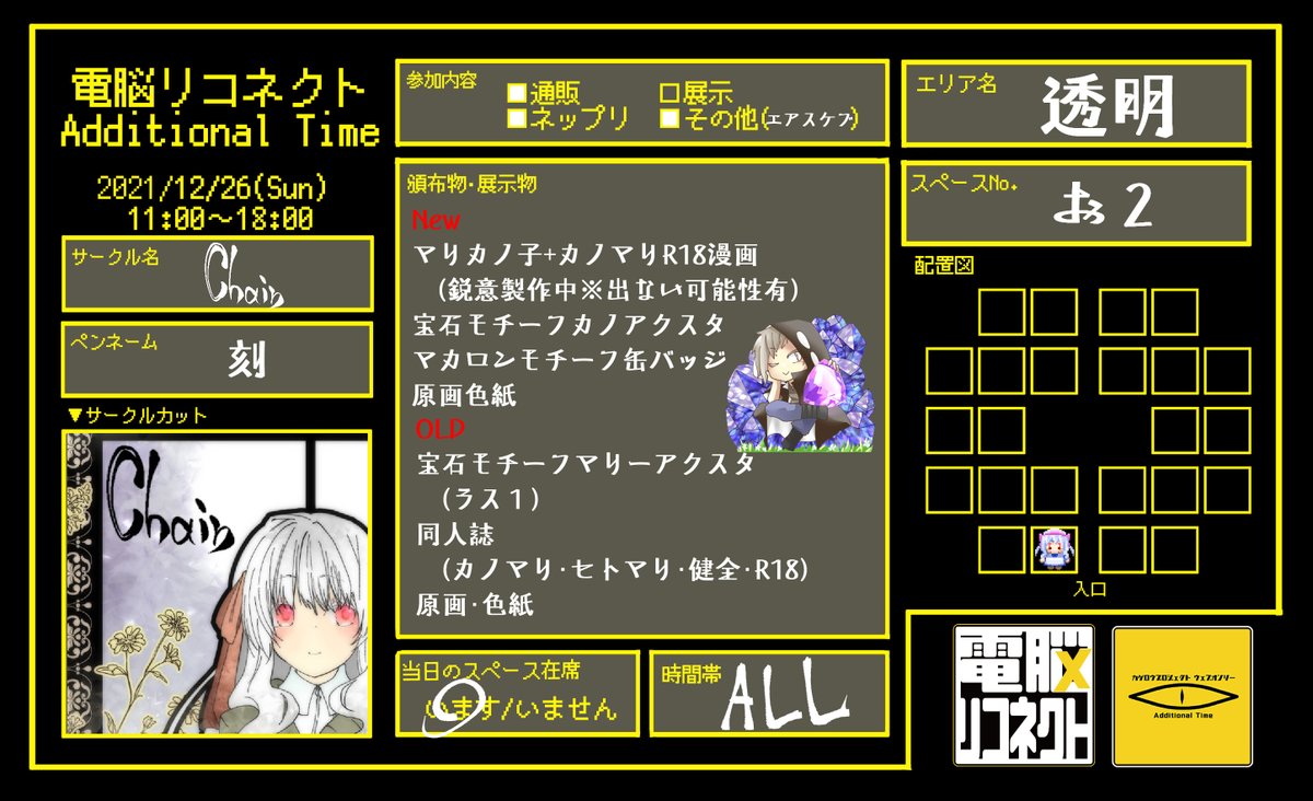 #電脳リコネクトAT 参加します!!Newは確実に出るの今のところ宝石モチーフカノアクスタになります!本は鋭意製作中! 缶バッジは今日入稿です! 毎度おなじみエアスケブも募集してます! ギリギリまで頑張るので当日よろしくお願い致します!! ちなみに出るとしたら全部少部数、です!