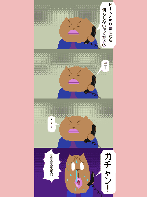 ドット絵 4コマ漫画 ぴくせるラッコ 「留守電」 #漫画が読めるハッシュタグ #ゆるいイラスト #ゆるかわ #pixelart #PixelManga #みんなで楽しむTwitter展覧会 #電話