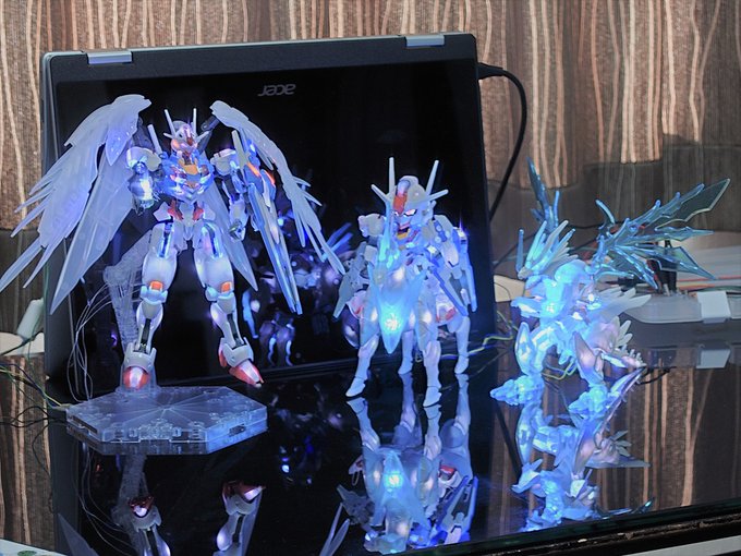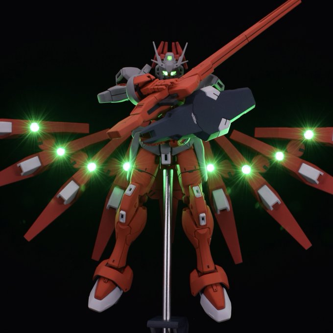 やっと晴れた☀️‼️ なんとか納得のいく写真が撮れました(*>∀<*)ノ 良かったら見てやって下さい❗️ 配線丸見えは突っ込まないでねw #水星の魔女 #ガンダムエアリアル #ガンプラ #電飾 #ガンプラ電飾 #ガンプラの画像貼るとRTされると聞いて