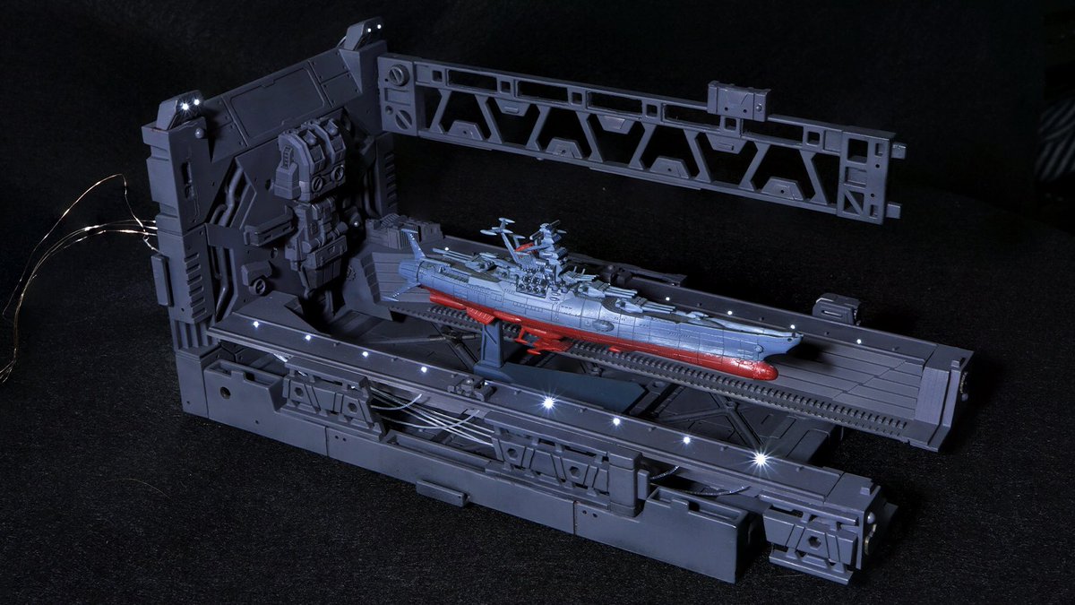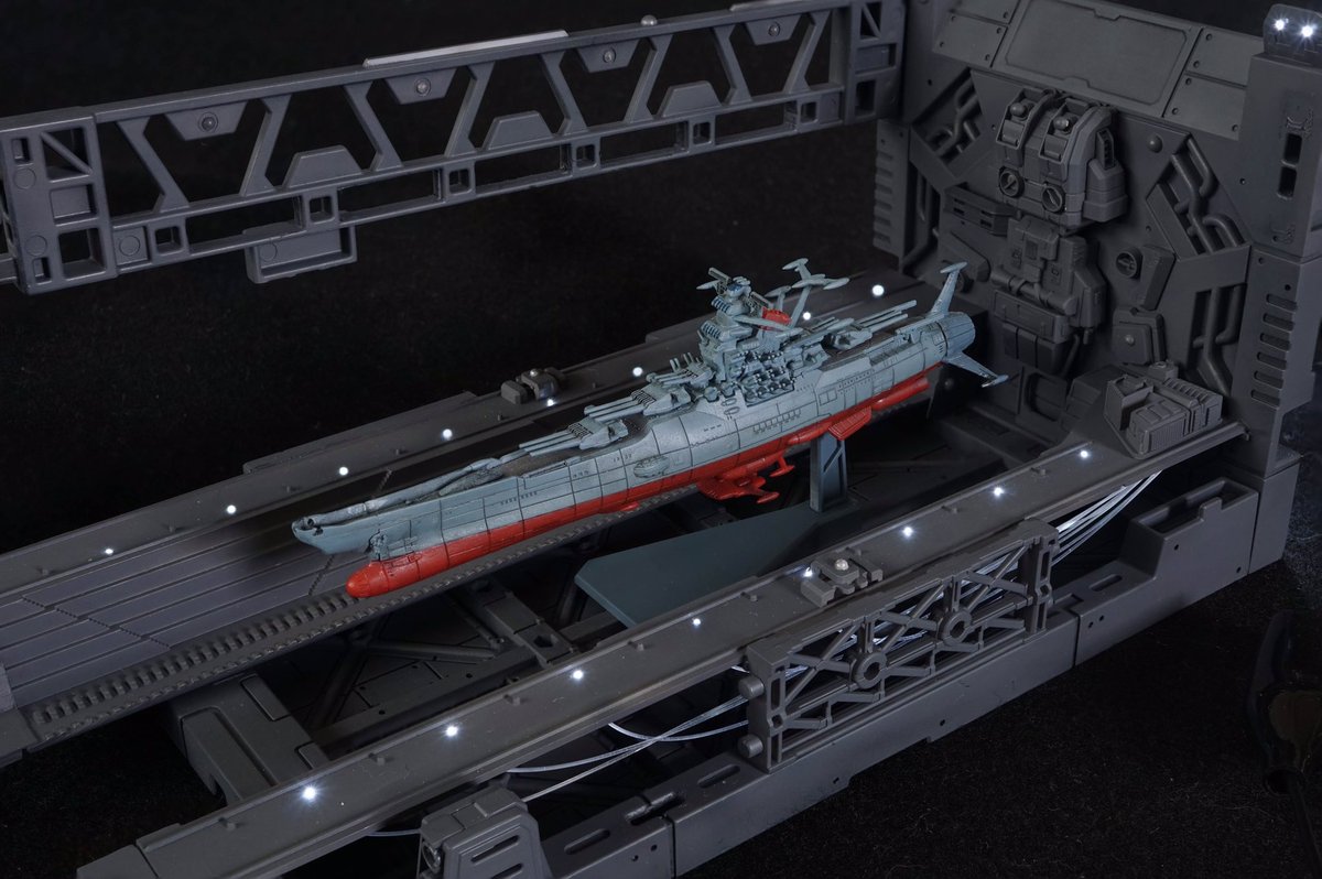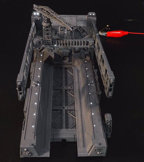 #今月作ったプラモ晒そうぜ 噂の百均の連結ディスプレイを基に作った宇宙戦艦用ドック(船渠)です。 初めて光ファイバーによる #電飾 をしてみました。 慣れない作業でしたが、うまく点灯してくれて良かったです。 いずれは #メカコレ 本体に仕込んでみたいですね。
