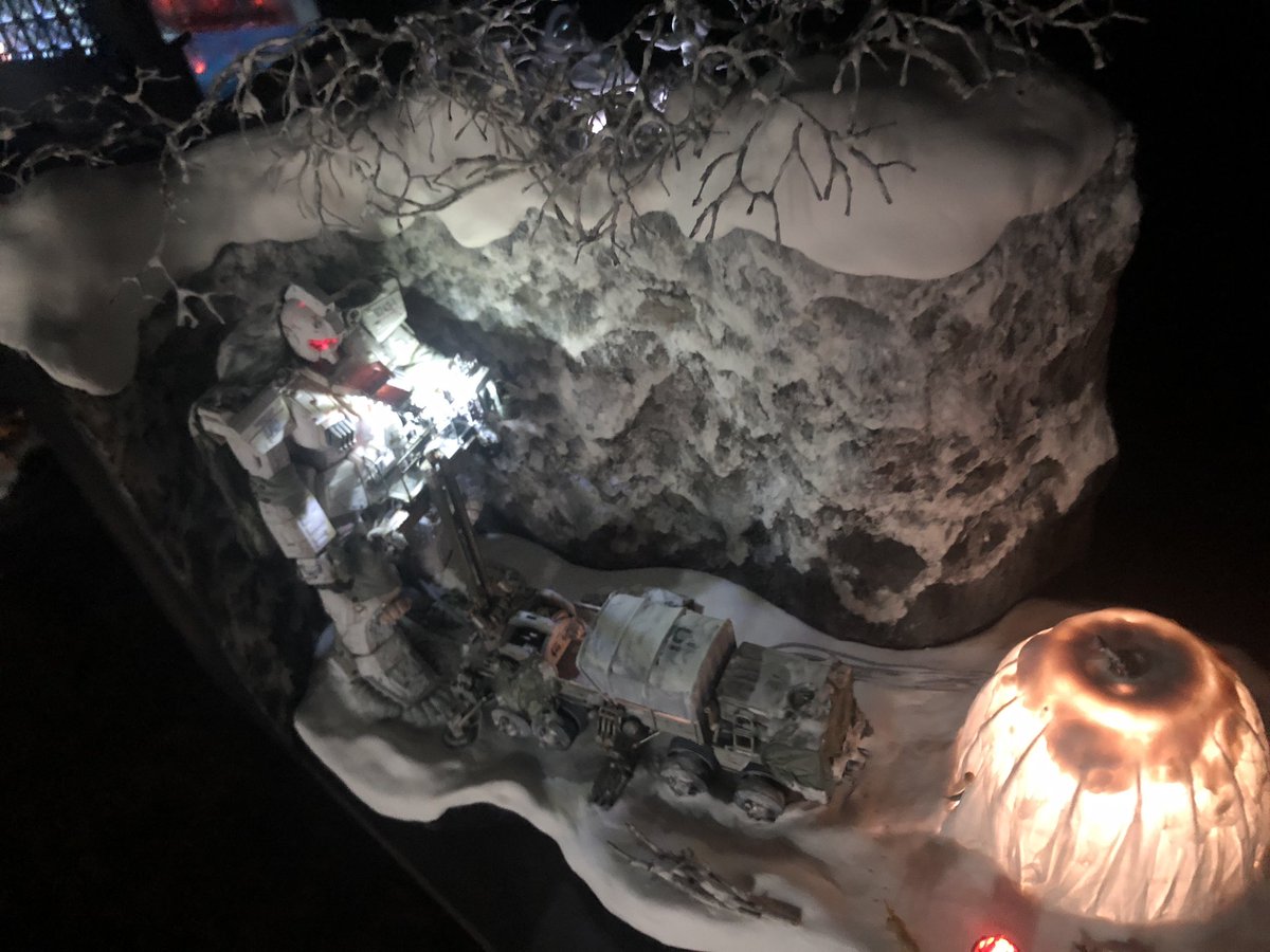 A.F.N.S. (1) 完成したばかりなので、再ツイートします😅 被弾した仲間を救助する妄想シーン。ぬかるんだ地面や濡れたスーツは初の試みで緊張しましたw #doro_off2021 #電飾タイム #マシーネン