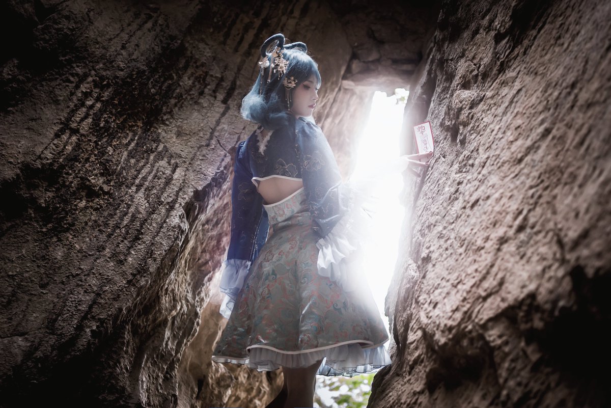 移时,见足傍有小洞口;心窃喜,以背着石,螬行而入。意稍稳,冀天明可以呼救。少顷,深处有光如星点。渐近之,约三四里许,忽睹廊舍,并无釭烛,而光明若昼。一丽人自房中出,视之,则青娥也。 #霍青娥 #東方project #cosplay