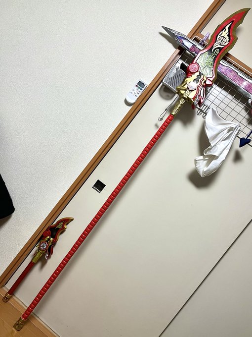 ドンドラゴクウの龍虎之戟 4日で完成✌️ 歴代最長2m そしてプロップはこれよりデカい 手書き模様と全1way布貼りが割と綺麗に出来た #霧崎工房 twitter.com/i/web/status/1…