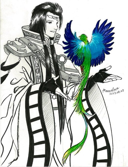 #丹衡生日快樂2023 #丹衡生誕祭2023 #サンファン #サンファンアート #Thunderboltfantasy #東離劍遊紀 #青い鳥で埋め尽くせ 兄上、生日快樂!鳥はカザリキヌバネドリ(ケツァール)です。世界一美しい鳥とも言われ、古代アステカでは神の使いとして敬われていたそう。青というより緑ですが💦