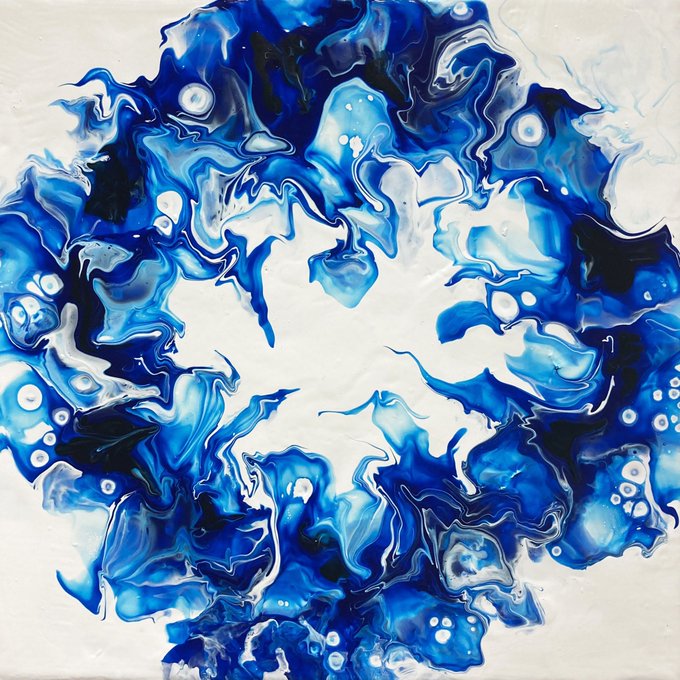 『紫陽花日和』 梅雨のシーズンがやって来ましたね。鬱陶しい雰囲気を楽しくしたくて絵の中の子に涼しげなイヤリングを着けてみました。 @ao_no_kakera さまの素敵イヤリング、本物のお花が美しい青色に閉じ込められています😍 #女の子イラスト #イラスト好きな人と繋がりたい #青が好き