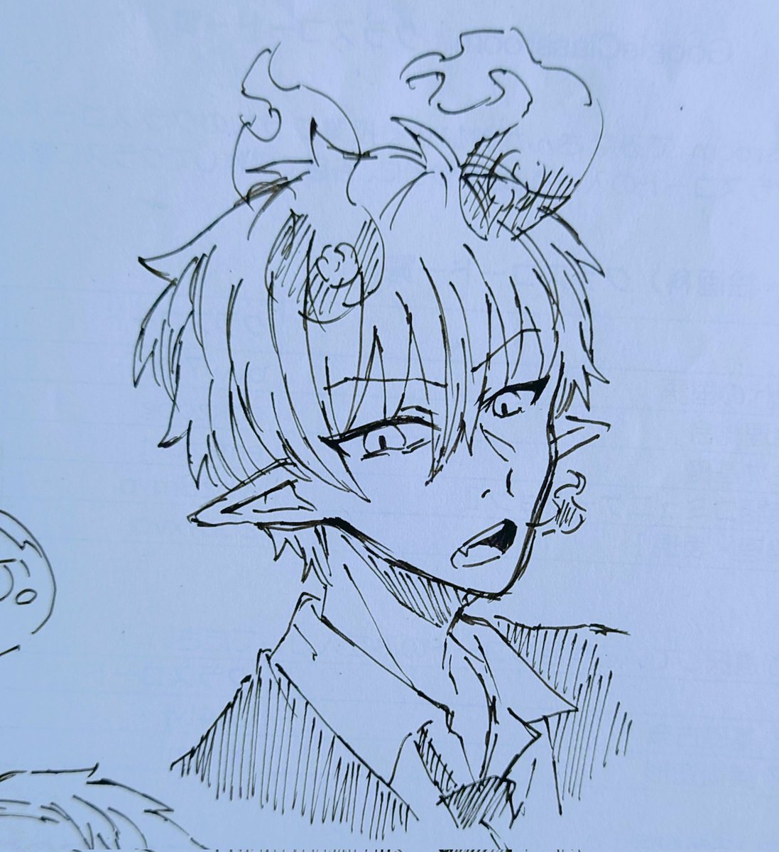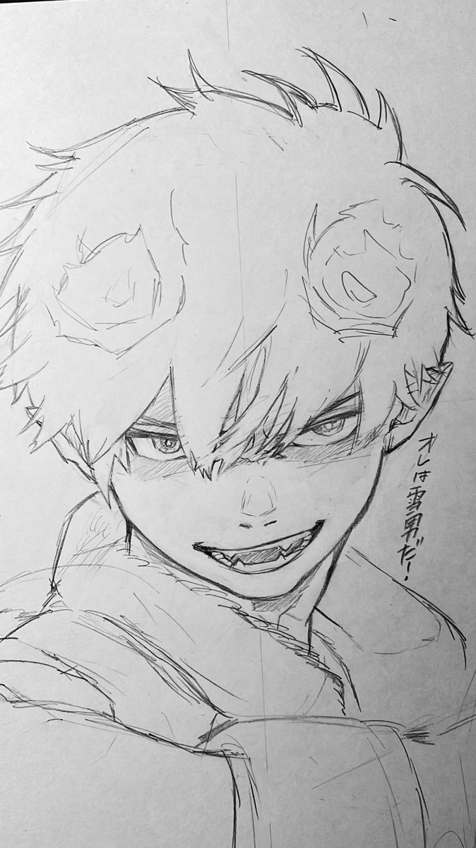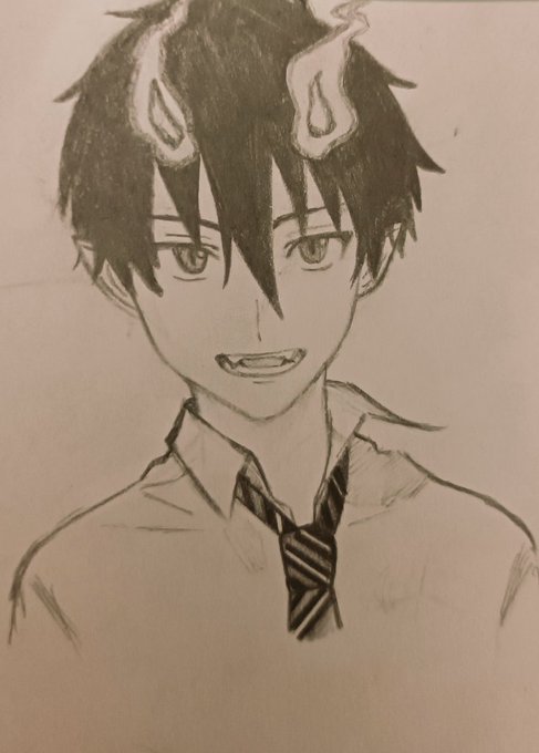 Well Rin's new design was to be expected to draw. I love me a broody boy sometimes that was once a happy one. Let's all get lost in those icy blues together. #aonoexorcist | #青の祓魔師 | #奥村燐