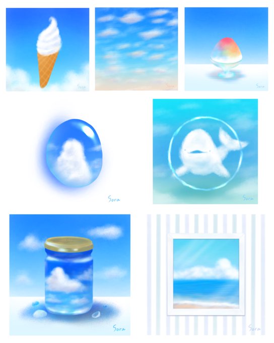 #青を見て体感温度をさげる 夏が終わってしまう前に 今まで描いた青い作品を レタッチしてみました🐳🍧🌊 #日本画 #絵画 #アトリエの系譜 #アート好きな人と繋がりたい #絵描きさんと繋がりたい