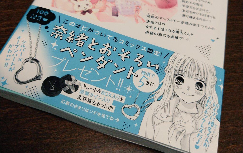 青春ヘビーローテーション10巻発売!限定特典などはありませんので行きやすい書店さんでゲットしてくださると嬉しいです☺️✨帯プレゼントは榛名が奈緒にプレゼントしたネックレスです…!😳✨ #青春ヘビーローテーション