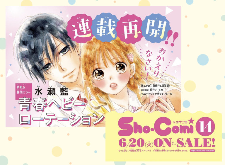 次号Sho-Comi14号から青春ヘビーローテーション表紙&巻頭カラーで連載再開です!たまにお休みいただきながらの再開ですが応援していただけると嬉しいです☺️📣✨ #青春ヘビーローテーション