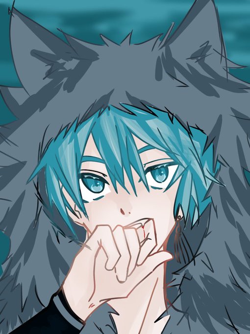 すこし おちこんでいるので あかるいいろの ぱーかーをきて ほんのすこしでも おっこちないように してみる、ヒロ #こねこしょうしょうめんへら #メンヘラ #青色 #パーカー #秋の創作クラスタフォロー祭り