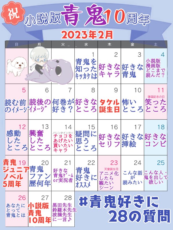 「好きなキャラ」 皆好きなのですが、黒田先生のひろし君のキレッキレのセリフが好きすぎて。またコミカライズで描かせて頂いた直樹君も感情移入深すぎて大好きです。ネットなどでイラストを見るたびに嬉しさで顔が溶けています。 #小説版青鬼10周年 #青鬼好きに28の質問 #青鬼