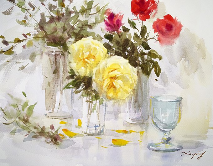 #この作品がなかったら今の自分は存在しなかったと言っても過言ではない作品 5年ほど前‥定年退職して〜 水彩画を本気? で描きはじめた頃の絵です。 #watercolor #水彩画 #風景画 #透明水彩 #landscape #アナログ #静物 #花