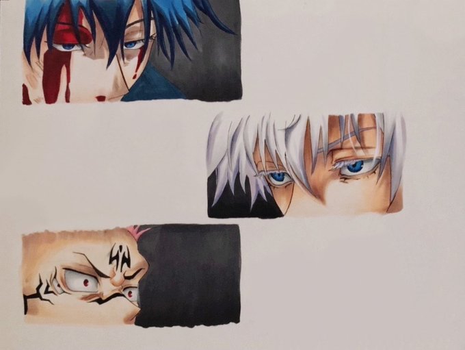 中1娘が描いた呪術廻戦の3人。。手は苦戦したようです💦 #模写 #呪術廻戦 #イラスト #イラスト練習中 #アナログイラスト #イラスト好きな人と繋がりたい #絵描きさんと繫がりたい #漫画 #アニメ #illustration #絵師さんと繋がりたい #artwork #drawing #イラスト好きさんと繋がりたい #絵 #非トレス
