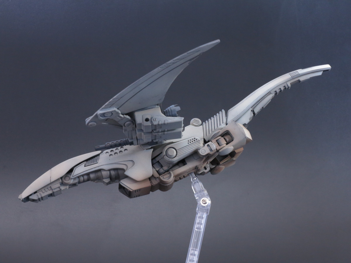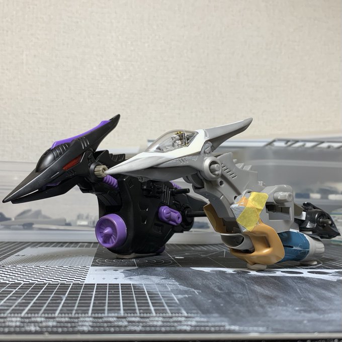ストームソーダーの頭のコブ、キャノピー化したら一気に共和国顔になるのでは?という思いつきからまた一体お手付きしちゃうやつ(狂鵬さんにいただいたVF-11、一機使わさせてもらっています…🙏💦) #非公式ゾイドオルタナティブ風コンペ