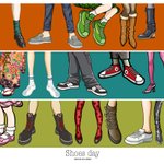 こんにちばコ~☘ 今日は #靴の日 らしいから、みんなで好きな靴に入って遊んだよ٩(◜௰◝)ว=͟͟͞͞ 飛んだり跳ねたり 一日中楽しめたよー🎶👟 #いちょおのハイカットはイチョバース #あおばコ #イラスト #靴 #スニーカー #みんなで楽しむTwitter展覧会 #芸術同盟 ★お昼におまけ絵があるよ