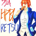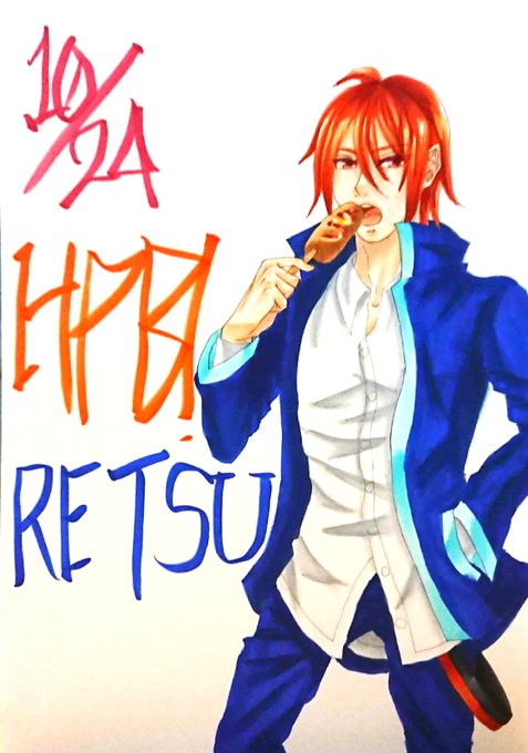 烈のお誕生日お祝いイラスト出来ました!間に合ったぞ!!ᕙ( ˙-˙ )ᕗ 今回はアメリカンドッグを食べさせました。烈、お誕生日おめでとう!( ^-^)ノ∠※。.:*:・'°☆ #popn_art #音ゲーキャラ描こうぜ