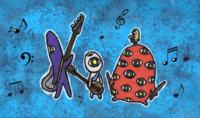 バンド "Oneeyes(わんあいず)" Vo. みたま G. わんあいど B. 水柱 Dr. 百目っち わんあいどくんの物語は@oneeyedstory で描いてます! #妖怪 #絵描きさんと繋がりたい #イラスト好きと繋がりたい #冬の創作クラスタフォロー祭り #音楽好きな人と繋がりたい