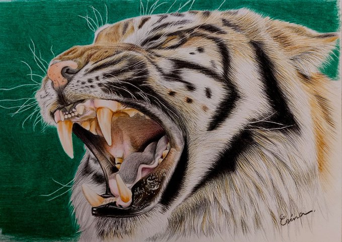 #年の瀬に渾身のイラスト晒すのでフォローしてください #高校生 #色鉛筆画 #みんなで色鉛筆イラスト見せ合おうよ #NewYear2022 #虎 #色鉛筆 #音海はる さん 今年の干支 『虎』を色鉛筆で30時間以上かけて描きました! 頑張ったので沢山の方に見ていただけると嬉しいです(^ ^)