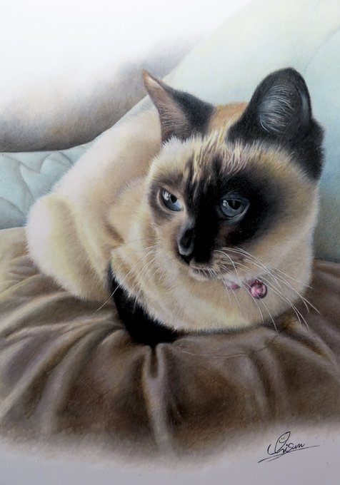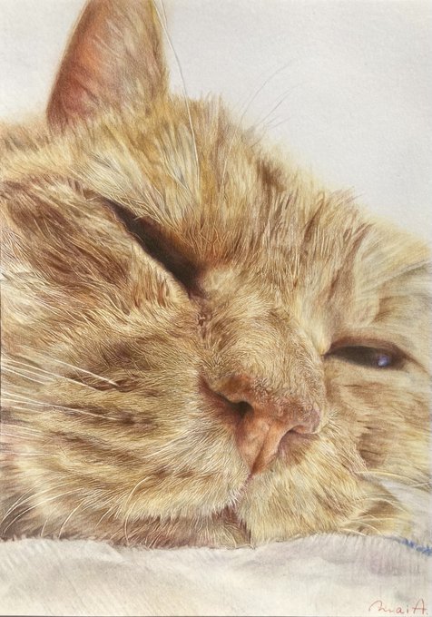 ごめんなさい💦サイン描き忘れたのでこちらも見て下さい🙏たいしたサインじゃありませんが…😭#色鉛筆画 #色鉛筆画上達ドリル動物編 #イロドリアル #音海はる #アビシニアン #絵描きさんと繋がりたい #イラスト好きな人と繋がりたい #猫好きさんと繋がりたい #みんなで楽しむTwitter展覧会