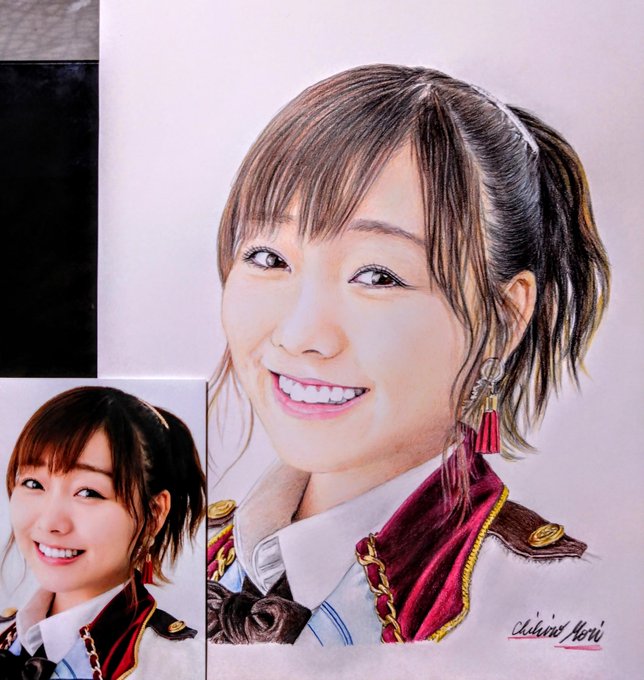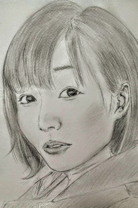 亜香里ちゃんの誕生日に 向けて 似顔絵を描いていますが、左の写真と似ているかな?😳どうも写メで撮ると写りが悪くなるんだよね😣💧 やっぱり満足のいく写りにならんなぁ😅 #須田亜香里 #似顔絵 #鉛筆画 #絵描きさんと繋がりたい #絵が上手くなりたい